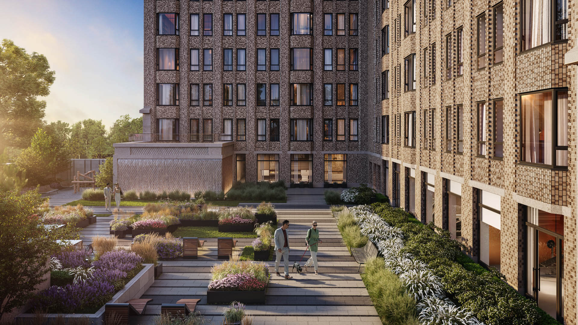 Изысканный внутренний двор жилого комплекса «GloraX Premium Белорусская» предлагает приватное пространство для уединения и общения. Ландшафтные дизайнеры создали этот двор как современную оазу в центре мегаполиса, насыщенную зеленью, цветами и уютными зонами отдыха.