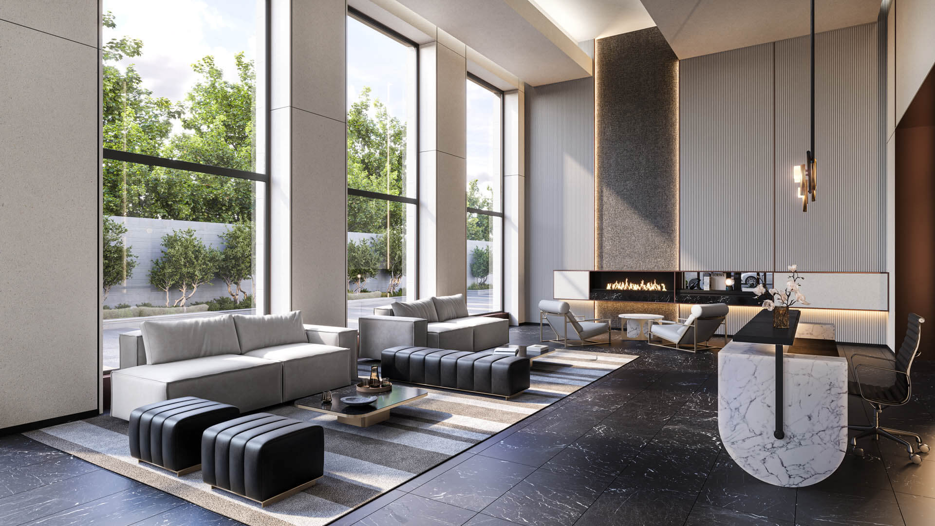 В просторной зоне ресепшн установлены мягкие диваны и уютные уголки для релаксации. Круглосуточный консьерж-сервис предоставит любые необходимые услуги для комфорта жителей.