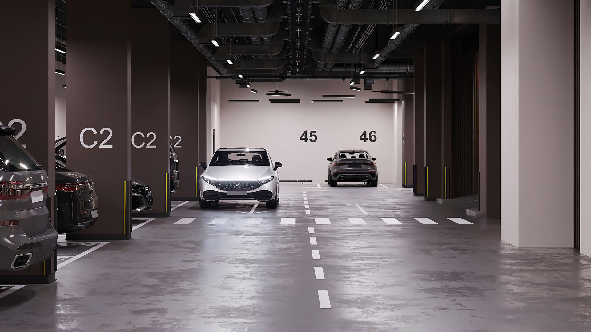 Паркинг жилого комплекса «GloraX Premium Белорусская» оснащен современными системами для комфорта жильцов. Разумное использование пространства позволяет легко размещать автомобили, а бесконтактный доступ обеспечивает удобство и безопасность.